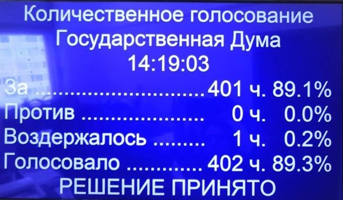 Сегодня законопроект был единогласно одобрен во втором чтении и вынесен на ежедневную верстку в Государственную Думу 24 июля и был одобрен в последнем третьем чтении.
